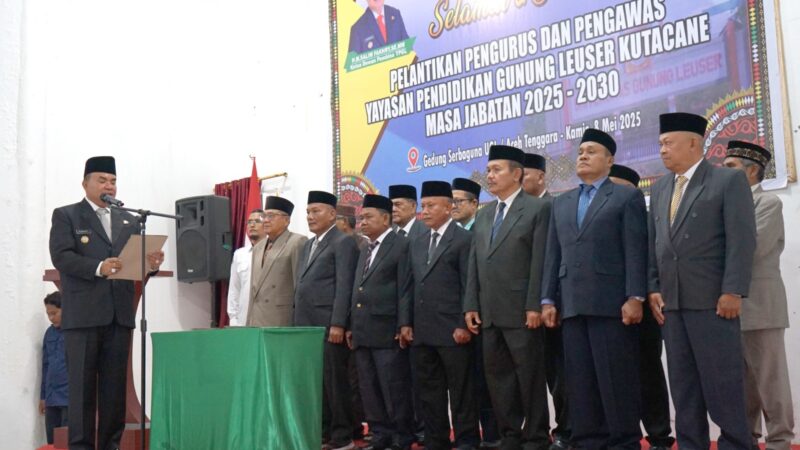 Aceh Tenggara, 8 Mei 2025 – Bupati Aceh Tenggara, H.M. Salim Fakhry, SE, MM, resmi melantik jajaran pengurus dan pengawas Yayasan Pendidikan Gunung Leuser (YPGL) Aceh periode 2025–2030 dalam sebuah upacara yang berlangsung di Gedung Serba Guna Universitas Gunung Leuser Aceh, Kamis (8/5).