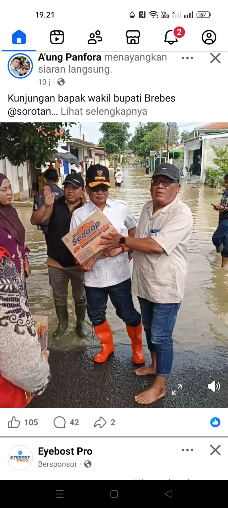 Wakil Bupati Brebes Wurja, Bagikan Bantuan Mie Instan Kepada Korban Banjir Luapan Sungai Cisanggarung