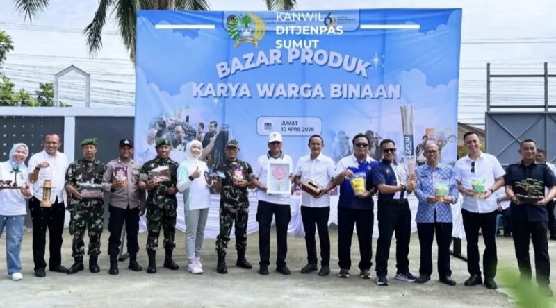 Dalam rangka memeriahkan Hari Bhakti Pemasyarakatan (HBP) ke-62 Tahun 2026, Kantor Wilayah Direktorat Jenderal Pemasyarakatan Sumatera Utara menggelar bazar produk hasil karya Warga Binaan Pemasyarakatan (WBP) di halaman Kantor Wilayah Ditjenpas Sumut, Jalan Pemasyarakatan, Medan Helvetia, Jumat (10/04/2026).
